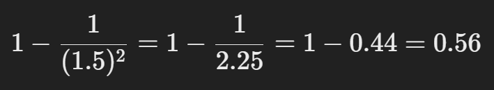 여기서 z=1.5z = 1.5라고 했을 때, 체비셰프의 정리를 사용해 최소한 몇 퍼센트의 데이터가 평균으로부터 1.5 표준편차 이내에 포함되는지를 구해보자.