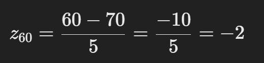60점은 평균보다 2 표준편차 아래에 있는 값이다.