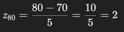 80점은 평균보다 2 표준편차 위에 있는 값이다.