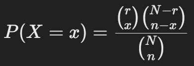 초기하 분포의 확률을 구하는 공식은 다음과 같다.