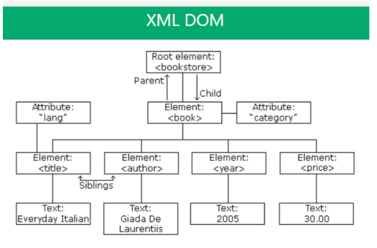 XML DOM은 이런 정확한 구조를 기반으로 해서, XML 문서를 트리처럼 만들어주고, 그 안의 요소나 속성을 다루는 방법이다.