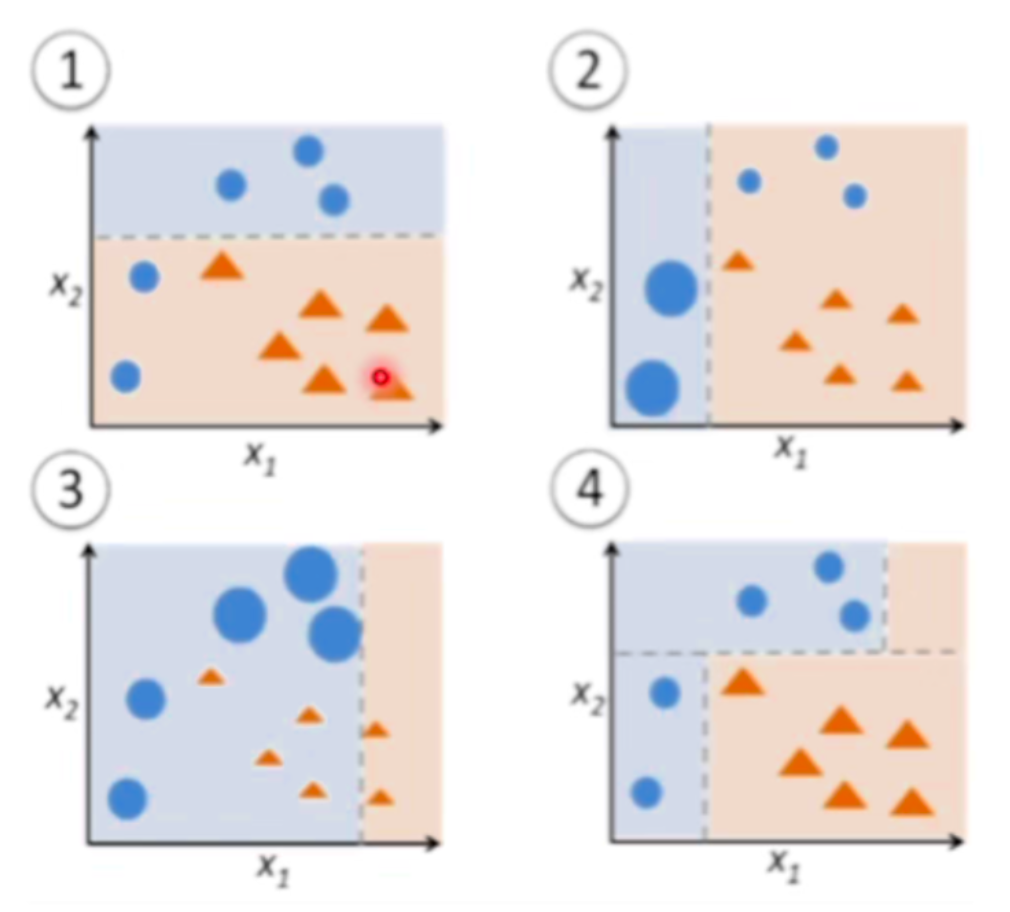 약한 학습기란? 그냥 혼자선 제대로 학습을 못하는 모델이다.