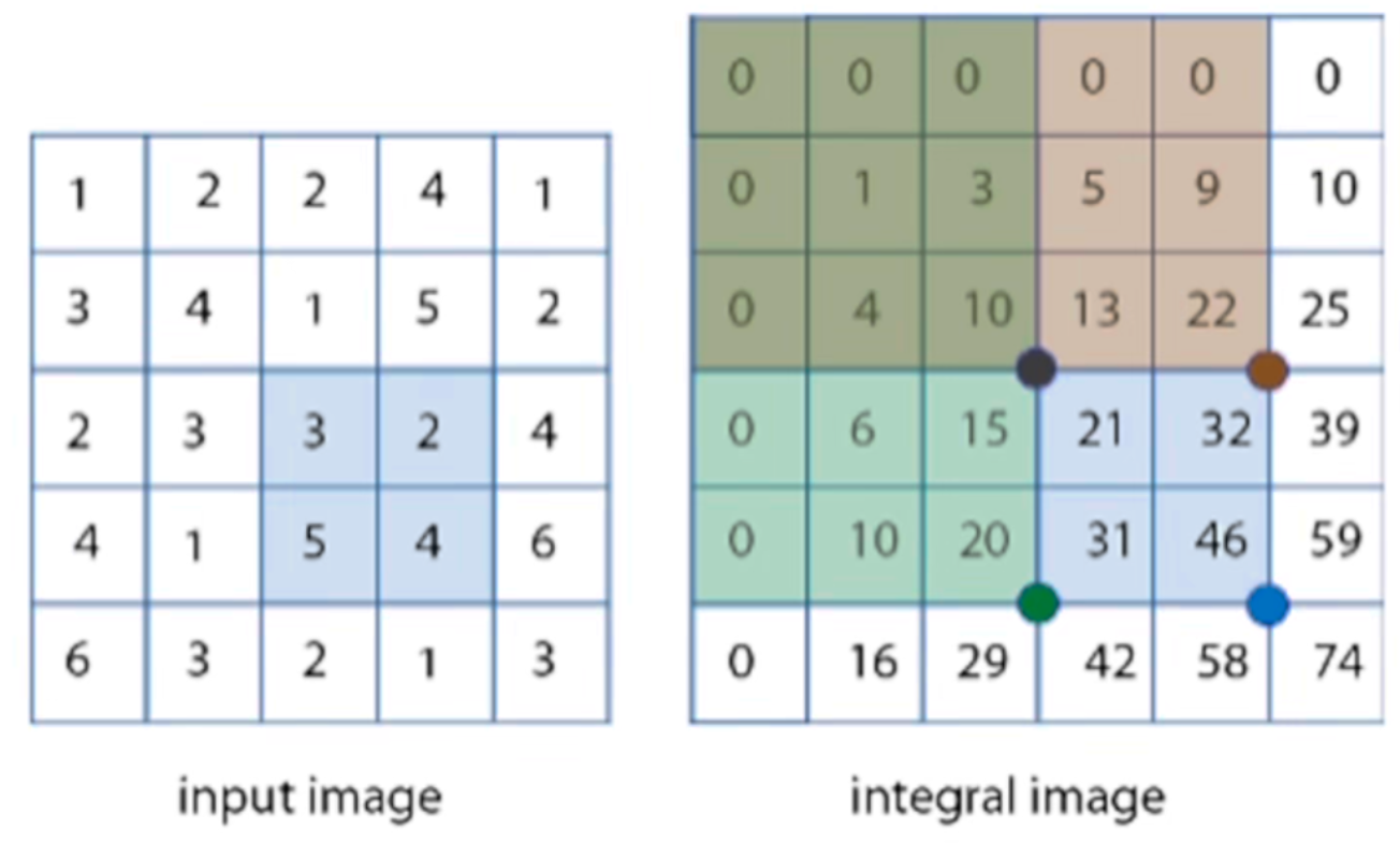 그래서 Integral Image라는 방법을 써서 사각형 영역의 픽셀 합을 아주 빠르게 계산하는 거다.