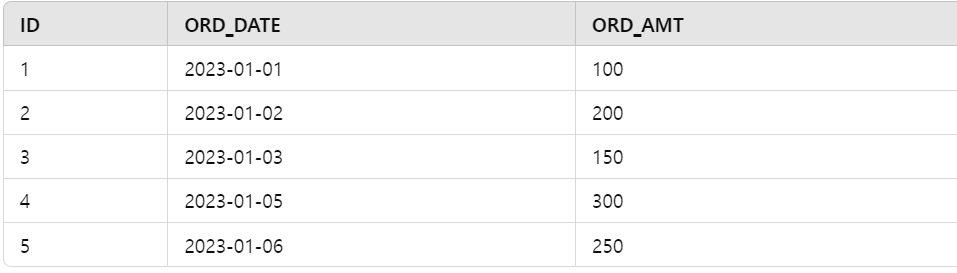 FROM ORDERS;다음과 같은 쿼리를 실행하면 다음과 같은 결과가 나온다