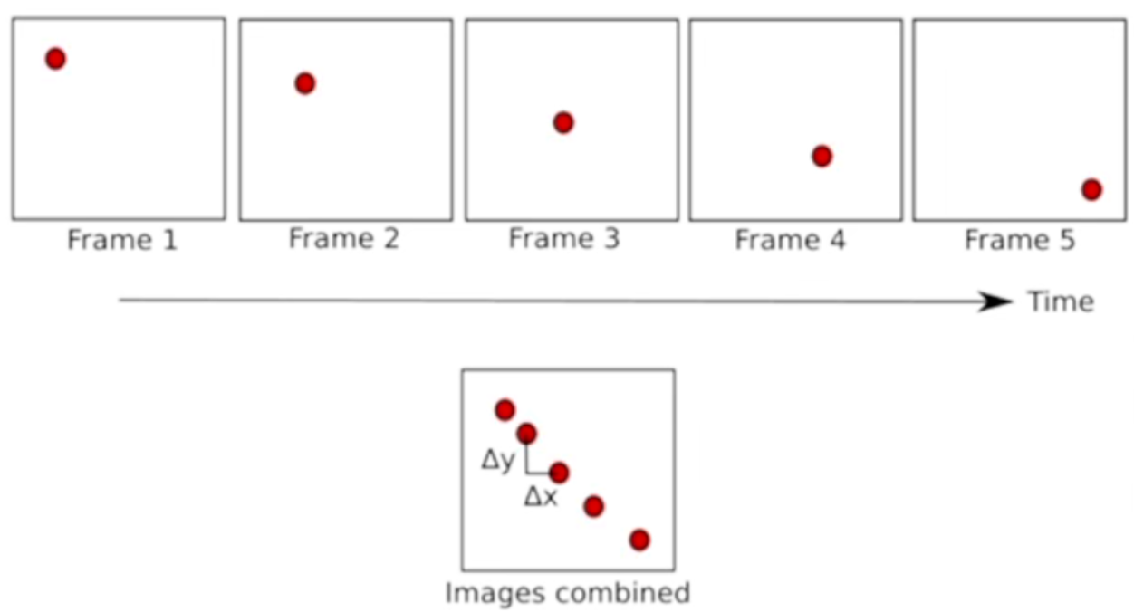 이 움직임을 Δx와 Δy로 표현할 수 있다. (각 프레임에서 픽셀이 이동한 거리)