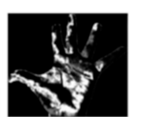 - 이 맵이 아래에 있는 흑백 이미지. 손과 비슷한 색상인 픽셀은 흰색으로, 그렇지 않은 픽셀은 검은색으로 표현